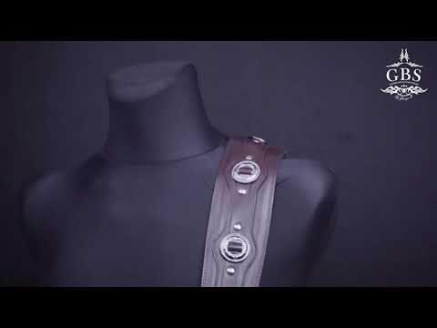 Bovine leather strap, adorned with silver metal conchos, beautifully complements your guitar to give it a shine. The weight distribution and comfort are particularly pleasant due to its ergonomic padding, which is also suitable for heavy instruments in any position. Handcrafted by the artisan from George B.