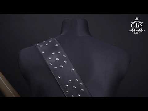 Replica of Paul Stanley's guitar strap, guitarist of KISS. Cowhide leather strap with nickel-finished metal rivets.