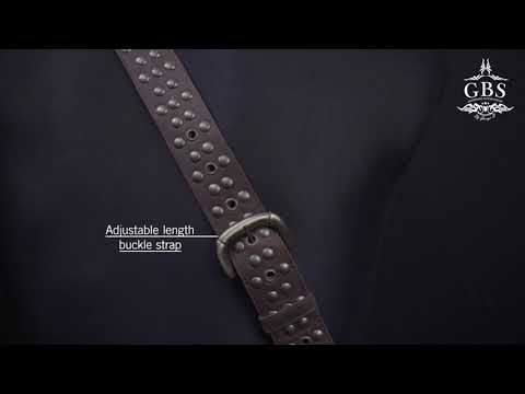 A 4cm wide belt that is extremely durable. Made of genuine leather with a microfiber lining, decorated with a metal ring and chrome metal rivets throughout the entire belt, it's brilliant. The length can be adjusted with a buckle system. Made of genuine leather.